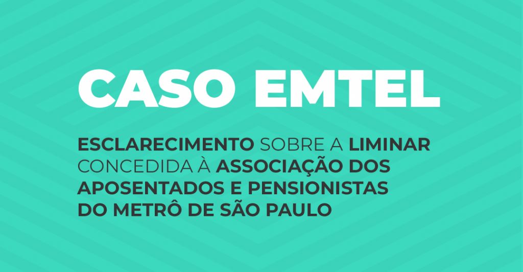O Metrus vem a público esclarecer que são falsas as informações divulgadas a respeito da cassação da liminar judicial concedida à Associação dos Aposentados e Pensionistas do Metrô de São Paulo, que preserva o patrimônio dos planos de previdência.